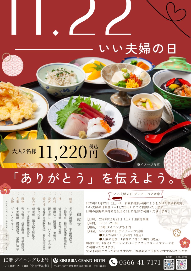 いい夫婦の日 ディナーペア会席【ありがとうを伝えよう】